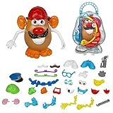 This suitcase is packed full with 40 different body parts and accessories to make hundreds of silly combinations! The wacky, mixed up looks for MR. or MRS. POTATO HEAD characters that you create will keep you busy--and giggling--for hours! Mr. Potato body comes with 4 ears, 3 pairs of eyes, 2 sets of teeth, 4 mouths, 1 tongue, 3 noses, 3 mustaches, 1 pair of glasses, 6 arms, 1 baseball hat, 1 pair of feet, 2 pairs of shoes, 1 fireman hat, 1 fire extinguisher, 1 police hat, 1 police belt, 1 police badge, 1 handcuff, 2 thin mustaches, 1 bowtie and carry case. Mrs. Potato body comes with 4 ears, 4 pairs of eyes, 1 set of teeth, 4 mouths, 3 tongues, 5 noses, 2 pair of sunglasses, 2 earrings, 2 flowers, 2 arms, 3 handbags, 1 pair of feet, 2 pairs of shoes, 1 flower hat, 1 ribbon hat, 2 wings, 1 pair of bunny slippers, 1 visor and carry case. " Forty mix-and-match parts let you create loads of silly looks for the famous face-changing spud! " Ages 2 and up. Read more